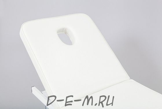 - Данная массажная кушетка является стационарной, но ее конструкция позволяет регулировать угол наклона спинки и положение подголовника, в котором имеется отверстие для лица.
